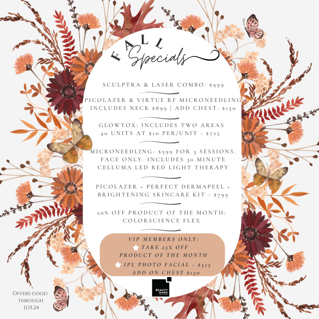 - Microneedling – $599 for 3 sessions. Face only, 45 minutes, no numbing required, no downtime. Includes a 30 minute Celluma LED Red Light Therapy post treatment for optimal benefits.